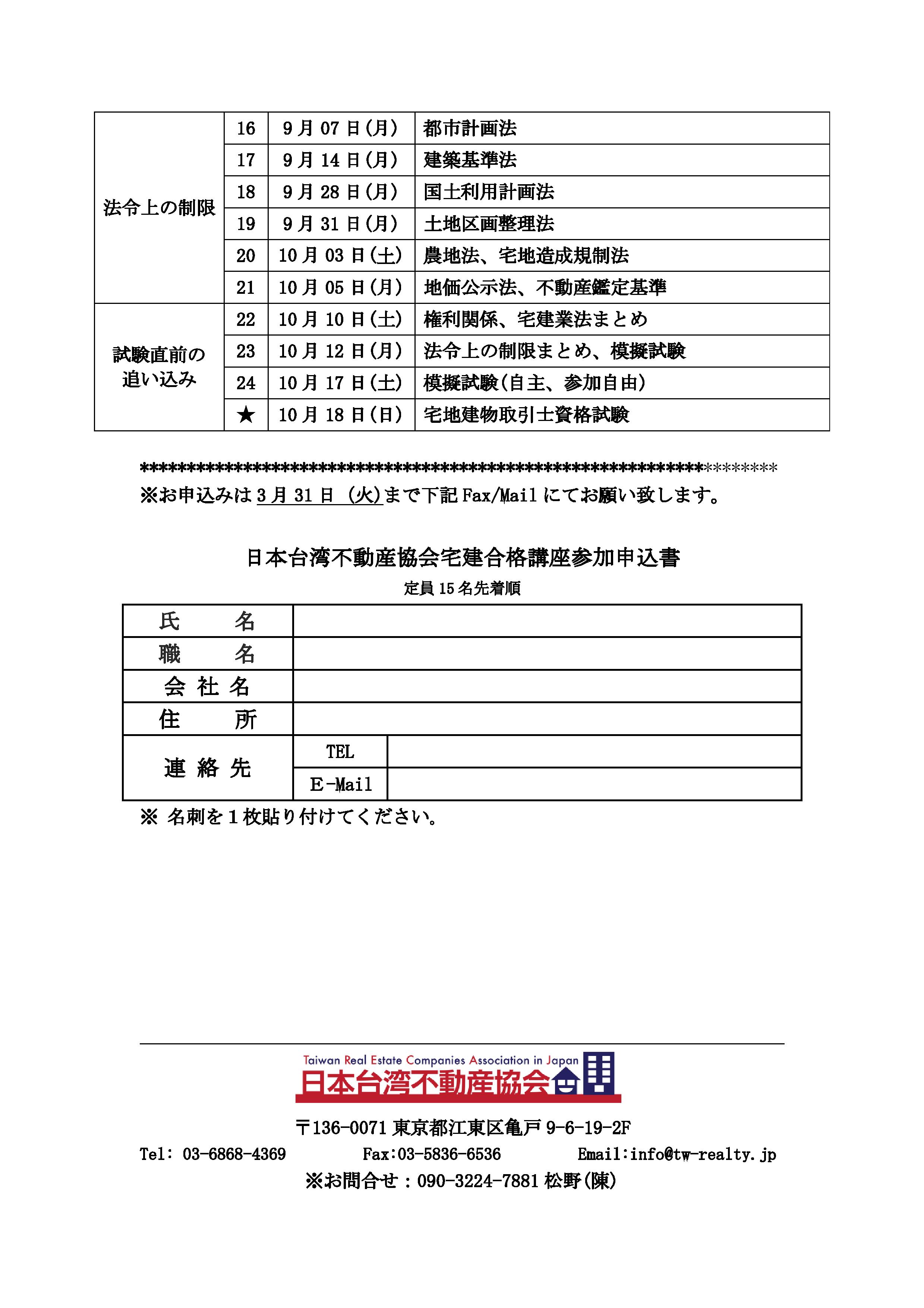 2020宅建合格塾 申込書ダウンロード