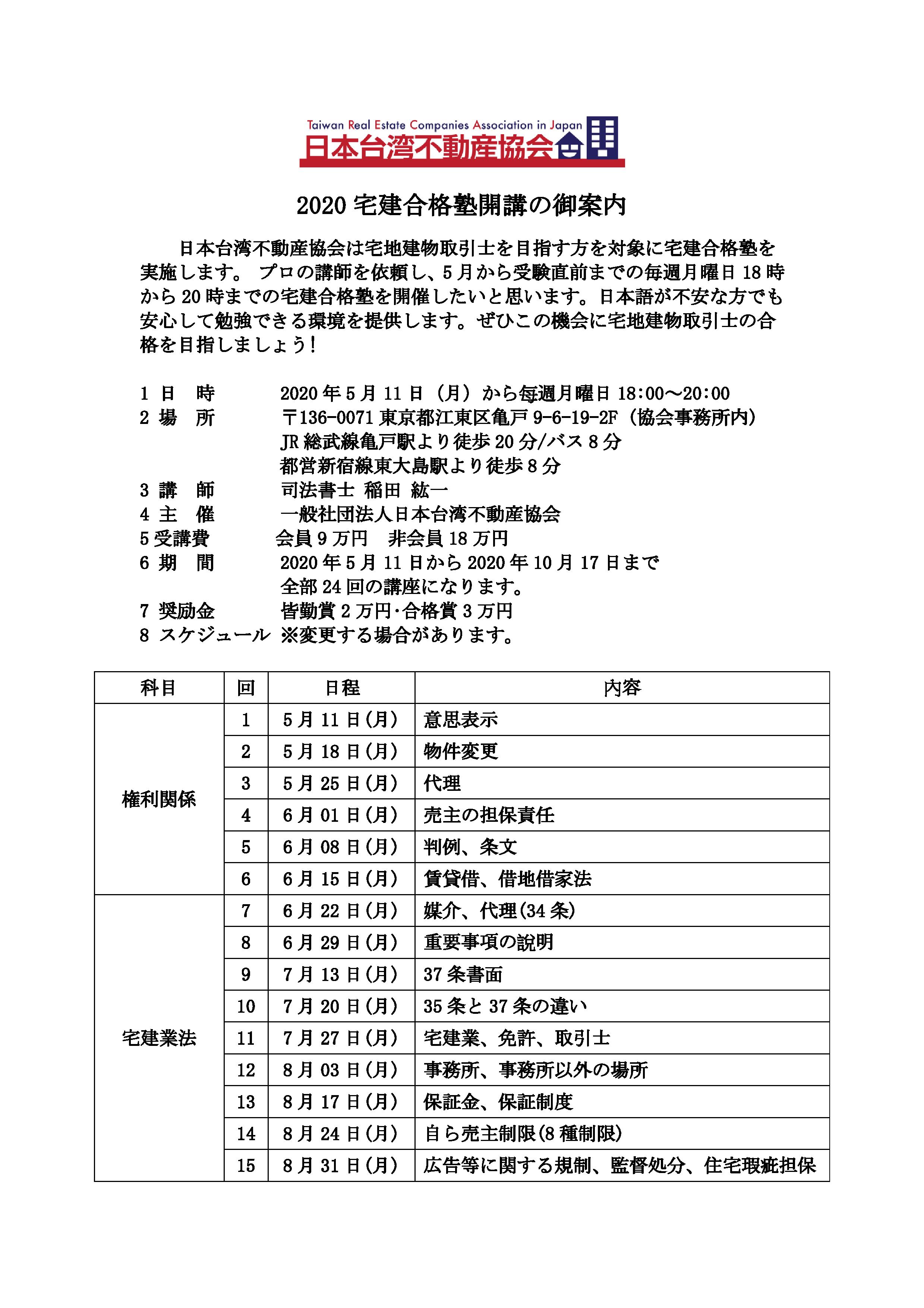 セミナーご案内 セミナーご案内 2020 宅建合格塾開講 ご案内 2020年2月25日 Facebook Twitter はてブ Pocket Feedly 2020宅建合格塾 申込書ダウンロード 宅建合格講座ー御案内2020 Facebook Twitter はてブ Pocket Feedly